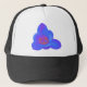 Este chapéu apresenta uma foto de uma flor de croco que foi digitalmente alterada pela adição de um filtro para produzir algumas cores brilhantes e bonitas. Tem tons de azul e roxo nas pétalas externas e tons de vermelho e laranja no centro. O resultado é uma flor legal com um interior quente e em chamas.