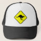 Fundo branco com sinal amarelo do cuidado com canguru no centro