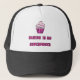 Um cupcake com o slogan "Baking is My Superpower" em letras cor-de-rosa ousadas, cria o design que é perfeito para quem gosta de assar. O cupcake é cor-de-rosa, e as espirais de gelo são também cor-de-rosa claro.