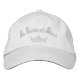 Mostrada em branco com uma cor gravada bordada de texto azul-prateado claro e a cor pálpebra da tiara-coroa-isacorde azul-prateado. Este boné tem texto frontal mostrado apenas com seu título. Retorno ajustável. Personalize este item e lembre-se de escolher a cor do chapéu.