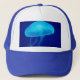 Uma medusa azul de incandescência flutua serenely através do mar azul profundo