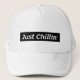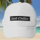Mantenha a calma — literalmente e figurativamente — com esse boné de caminhoneiro descontraído **"Just Chillin’"**. Com **letras brancas delineadas em preto**, esse boné respirável de malha na parte de trás é perfeito para dias ensolarados, encontros casuais ou completar seu visual mais relaxado. Se você está indo para a praia ou apenas relaxando no sofá, esse boné diz tudo — então você não precisa.