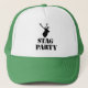 Para um tipo diferente do partido de veado acessório olhe este boné do partido de veado. Você pode personalizar este design mudando a cor do chapéu, mudando a cor do fundo no chapéu e mudando o texto ou mesmo adicionando mais texto. Isto significa que você pode criar o chapéu perfeito para todos os veados. Para outros acessórios da noite do veado, incluindo os t-shirt e os crachás feitos sob encomenda (que você pode personalizar e personalizar enquanto você quer) verifique por favor para fora minha loja.