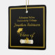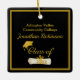 Ornamento de graduação com texto frontal e traseiro personalizado. Design de unísex legal fácil de personalizar com seu próprio texto. Apresenta a imagem de um boné de formando dourado e um diploma associado correspondente num quadrado enquadrado. Cores vermelhas, pretas e outros bonés também estão disponíveis neste mesmo design.
