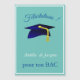 Na moda, parabéns modernos com um boné de formatura azul com fundo especial e quadro branco. Cartão magnético em francês para graduações de segundo grau - adicione um nome para personalizar este item. Você pode adicionar texto, fotos e outros elementos.