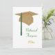 Pintura de um boné de formatura de ouro e de uma fita verde impressa em convites para serem personalizados on-line, antes da compra. Altere o texto nos formulários de modelo ou, para fazer outras alterações, clique em Personalizar.