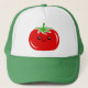 O tomate vermelho Kawaii encara o chapéu de camionista vegetal. Design de comida de desenho engraçado para ele ou para ela. Ideia divertida para crianças adolescentes, namorada, namorado, vegetariana, vegana, dietista, nutricionista etc.