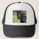 O garanhão preto é um animal bonito, e olha grande neste boné. parte dianteira 100% da espuma do poliéster. a parte traseira da malha do nylon de 100% mantem-no para refrigerar. Ajustável de 17" a 24" disponível em 11 combinações de cor.