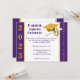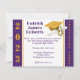 Convite para graduação, tema Boné e Diploma, com ano de aula e "festa de formatura" em Dourado e roxo. O verso do convite inclui o nome do formando. O cartão pode ser personalizado com suas próprias imagens, trabalho de arte, etc.