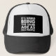 A qualidade do boné é boa, porém o material da parte de trás deveria ser igual ao da frente. Atrás ele é confeccionado com aquela redinha perfurada que dá um aspecto grosseiro ao acabamento do boné. Tirando o material usado na confecção da parte de trás do boné, que deveria ser de tecido e não de nylon perfurado, é um bonito boné, só peca nesse detalhe do material.