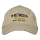 Aqui está uma seleção de designs de aposentadoria personalizados disponíveis em bonés casuais de beisebol de bordado fino para todos. Use o link "Perguntar a este Designer" para entrar em contato conosco com suas solicitações especiais de design ou para obter assistência com qualquer das suas necessidades de personalização.
