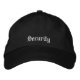 Boné preto de baseball de segurança personalizado, branco bordado. Ideia comercial e de escritório. Pode ser personalizado com um nome de funcionário ou logotipo de empresa.