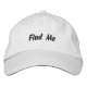 Encontre-me texto preto com o chapéu bordado branco. É um tipo de chapéu ou boné muito engraçado. Estilo: Roupa Alternativo Cor básica do Boné ajustável: Branco Você pode personalizar seu chapéu como quiser. (Clique no botão Personalizar para que você possa ver a caixa de texto, editar seu nome ou texto como quiser)