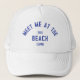 Encontre-me no chapéu de caminhoneiro da praia é o chapéu perfeito para o seu dia a dia na praia. Letreiro azul da praia com efeito de desgastado. Personalize com os detalhes da sua viagem à praia... ano e destino da praia. Perfeito para uma viagem à praia com a família ou amigos ou despedida de solteira no clube da praia ou como um lembrete de uma viagem anterior. Acessórios combinando disponíveis na Coleção Faixa Amarela do Cabana Meet Me At The Beach.
