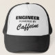 Engenheiro psto pelo chapéu do camionista da cafeína. Boné engraçado para o amante do café, o viciado, o chefe, o trabalhador do co, o marido, o pai, o irmão, o vovô, o empregado, os funcionarios, o humor do escritório dos pessoais etc. para homens e as mulheres no trabalho. Citações customizáveis para outras ocupações e profissões. Ideia feita sob encomenda do presente de aniversário do headwear. Design do modelo da tipografia.