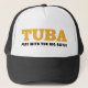 Tuba - o jogo com os meninos que grandes o slogan vem em um chapéu da música do divertimento é perfeito para que as seções da tuba da banda construam o orgulho da seção.  Os bonés da tuba igualmente fazem presentes do divertimento para todo o jogador da tuba em sua lista do feriado.