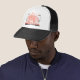 Este chapéu do verão do divertimento é perfeito para qualquer um que está planeando em fazer algum churrasco exterior e no cozimento na grelha. Tem um porco nele, sobre um fogo com penas do fumo. Duas salsichas skewered em forquilhas. As palavras dizem, "deixe-nos porco para fora!"