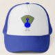 Este chapéu maravilhoso apresenta um brilhante e ousado Peacock de Natal vestindo um chapéu de Papai Noel. O pássaro tem uma barriga azul brilhante com uma bela coleção de penas guardadas orgulhosamente atrás. Os pontos de vista são azuis, castanhos e verdes. O Pavão tem grandes olhos pretos e um belo bico de cinzas.