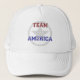 Uma estrela de prata dentro de um anel de prata e as palavras "Team América" em vermelho e no azul feitos em um olhar afligido desvanecido.