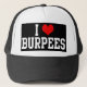 Suporte seu material no gym ou em torno da cidade nestes burpees legal, engraçados do amor de I alinhe com fundo preto e um coração vermelho. O excelente para um instrutor pessoal, entusiasta do exercício e da malhação ou o professor de classe trabalhador do exercício que ama fazer clientes suar e fazer aquele o impulso-acima do divertimento e o exercício da combinação do jaque de salto fura. Todo o © de Copyright do design www.CuteComfy.com 2012
