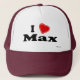Eu amo máximo! É seu nome máximo? Você tem uma esposa, um namorada, um membro da família fêmea ou um amigo fêmea que você saiba amores você? Ou você tem um marido, um namorado, um membro da família masculino ou um homem Máximo nomeado amigo quem você ame profundamente? Em caso afirmativo, este "que eu amo" o chapéu é exatamente o presente que você está procurando! As características de design a letra "mim" na rotulação preta com um coração vermelho na parte superior e "máximo" na rotulação preta na parte inferior.