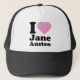 Eu amo o chapéu de Jane Austen. Um chapéu que caracteriza a frase "eu amo Jane Austen," na pia batismal do preto do tanoeiro com um coração cor-de-rosa. Um grande presente para fãs de Jane Austen, orgulho e preconceito, e escritores das mulheres.
