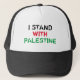 Eu apoio o texto preto vermelho verde-preto da Palestina, "Trucker Hat". Disponível em muitas cores e opções de estilo.
