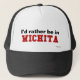 Eu preferencialmente estaria em Wichita! É você de Wichita, Kansas? Você tem um amigo ou um membro da família que amem Wichita, Kansas? Em caso afirmativo, isto "eu preferencialmente estaria em…" o chapéu é o que você está procurando! As características de design "eu preferencialmente estaria em" na rotulação preta pequena na parte superior e no "Wichita" na rotulação vermelha grande na parte inferior.
