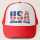 É o muito engraçado, patriótico, chapéu do camionista da equipe do bebendo da bandeira dos EUA! Caracterizando uma imagem da qualidade da bandeira dos E.U. nas letras EUA, e as palavras, "a equipe bebendo", com as estrelas nas letras, centrou-se abaixo. Escolha das cores diferentes do chapéu e agarre seu hoje! Um grande chapéu para 4o julho, ou ALGUM partido patriótico!