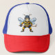 European honey bee (Apis mellifera), cartoon cute happy bee hockey player playing sport, bee Ice hockey player skating and shooting the puck