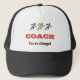 Este chapéu atraente faria um presente "obrigado você" para um excelente para um atletismo ou um treinador de corrida. Ele está pronto para personalizar com um nome ou outro texto, e o design apresenta um pictograma de três corredores. O exemplo mostrado inclui a legenda "Estou no comando!", mas você pode editá-la de acordo com sua preferência.