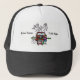 Está aqui um chapéu do divertimento para o operador de radioamador exterior (ou o dia de saída) a vestir-se.  Caracteriza um caminhão com um grupo das antenas e o equipamento setup na conexão esquerda à bateria do caminhão.  Há uma grade do propano para cozinhar a comida demasiado.  O operador de rádio tem "73" em seu t-shirt.  Você pode personalizar este boné com um NOME e então um SINAL de CHAMADA.  Ou para ter o gráfico somente, suprima do texto nas caixas.  Você pode comprar este design em toda a cor e não apenas preto e branco.  Projetado por Sheila Cicchi, Brownielocks.com, todos os direitos reservados.