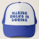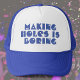 Fazer Buracos é Chato Frase de diversão em um chapéu. Palavras engraçadas em um boné. Presente para um carpinteiro ou ferreiro talvez.