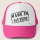 Feito em San Diego! É você de San Diego, Califórnia? Você tem um amigo ou um membro da família que amem San Diego, Califórnia? Em caso afirmativo, isto "feito em…" o chapéu é exatamente o presente que você está procurando! As características que de design resistido "feito em San Diego" no preto estêncil-como a rotulação cercou por um retângulo arredondado preto.