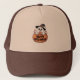 Feliz Halloween Caffeine Ghost Trucker Hat. Dentro uma abóbora gigante, um fantasma dá um café debaixo do seu chapéu de bruxa torto. Boo-hoo? Mais como o brew-hoo! ele ri, o bigode de espuma brilhando. Feliz Halloween, amigos cafeeiros ficam assustados e acordados!