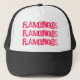 Chapéu preto do camionista com o flamingo escrito no rosa brilhante. Muito Fasion dianteiro e obtem a atenção que você quer!