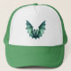 This ball cap has a spooky flying green bat with its wings spread and a furry body.