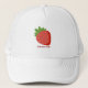 Une illustration de fraise audacieuse et éclatante, dans un style plat et moderne, encadrée dans une forme décorative de badge. Des tons rouge vif rehaussés de pépins jaunes et de feuilles d'un vert frais, accompagnés de la légende en français « Fraîcheur d'été ». Fraîche, ludique et parfaite pour l'été !