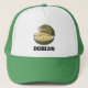 A imagem é um conteúdo generativo. Eu tinha esta imagem de um duriano então pensei por que não jogá-la num chapéu. E como um Durian é verde, pensei que deveria estar em um chapéu verde. Então coloquei o nome Durian debaixo da imagem da fruta.