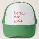Top off your look with this funny “Better Not Pout” red and green trucker hat. A cute and comfy way to spread cheer, stay stylish, and bring a little sass to the season.