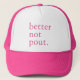 Top off your look with this funny “Better Not Pout” pink trucker hat. A cute and comfy way to spread cheer, stay stylish, and bring a little sass to the season.