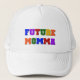 Futuro Camisas Momma, capuzes, cartões, adesivos, botões, sacos de tote, mousépias e outras roupas e presentes da Mamãe Futura com texto de cores primárias.