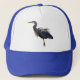Este chapéu caracteriza a garça-real de grande azul, um grande pássaro vadeando no Ardeidae da família da garça-real, no próximo comum as costas da água aberta e nos pantanais. É a garça-real norte-americana a maior. As características notáveis incluem penas de vôo do slaty, coxas vermelhos marrom, e uma listra vermelho marrom e preta emparelhada acima dos flancos; o pescoço é oxidado-cinza, com lista preto e branco abaixo da parte dianteira; a cabeça é mais pálida, com uma cara quase branca, e um par de penas pretas que funcionam de apenas acima do olho à parte traseira da cabeça. As penas no pescoço mais baixo são longas e pena-como. Porque esta é a estação da criação de animais, igualmente tem penas na conta traseira e alaranjada mais baixa. Está estando na água pouco profunda e suas penas backlit pela luz solar luminosa.