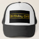 Garota de aniversário! Na fonte de ouro divertida. Escolha a cor do chapéu do caminhoneiro. Os clientes podem alterar a caixa de texto preto ou removê-la do design. Combine com o capuz. Por https://www.zazzle.com/store/celestesheffey