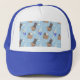 Boné Gatos na caixa e leite cai em azul