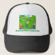 Chapéu de golfe divertido. Imagem de desenho animado divertida de um golfista jogando golfe e tendo uma tacada de sorte que rebate em vários objetos diferentes. Chapéu de clube de golfe. Chapéu para membro de um clube de golfe.