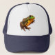 Uma rã-gigante verde, amarela e marrom colorida grande com atitude, trabalhos de arte da foto de um grande sapo, teste padrão listrado da boca e olhos marrons dourados. Os sapos são considerados afortunados em muitas culturas. O significado espiritual dos sapos é uma da boa sorte, a riqueza e a prosperidade, o equilíbrio, a saúde e a cura, a primavera, a música, a voz e talentos vocais, mágica da lua, amor romântico, amigos, comunidade e celebração. Os sapos e outros anfíbios são associados com a mágica elementar porque vivem em ambientes da terra e da água, e com a mágica da transformação enquanto mudam das larvas nadadoras, tais como tadpoles, aos adultos que são móveis na terra. Mesmo os sapos que vivem em uns ambientes mais secos, ou passam todas suas vidas nas árvores, água da necessidade para spawn. No folclore e na medicina antiga, o sapo relaciona-se à saúde orgânica na parte devido a sua pele altamente sensível, que era usada frequentemente por shamans em ritos da medicina. Quase todos os sapos são encontrados em habitat de água doce do pantanal, à excecpção de um par espécies que se adaptaram à água salgada. Bênçãos Hoppy do dot com bom de desejo feliz.