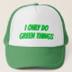 GREEN/WHITE TRUCKER HAT: "EU SÓ FAÇO COISAS VERDES"