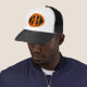 Este maldito chapéu de Halloween apresenta um oval laranja com seis corvos. Cada corvo tem olhos amarelos com pupilas pretas e asas salientes. Os corvos voam em direção uns aos outros formando uma forma oval.