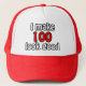 Grappige pet. Leuk voor je 100ste verjaardag. Laat zien hoe goed je er uit ziet op je honderdste verjaardag! Ook leuk om als cadeau te geven aan iemand die honderd is geworden. Kleuren: zwart, wit en rood.